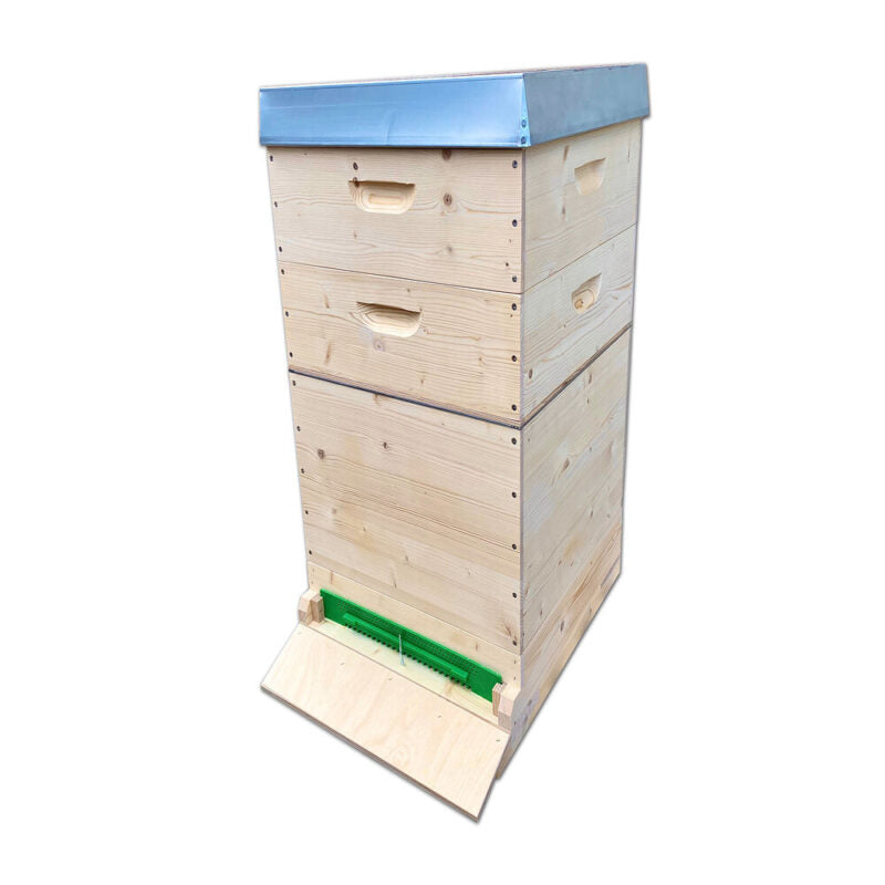 • Gitterboden hoch mit Anflugbrett, Fluglochkeil, Putz-keil hinten und Kunststofflade