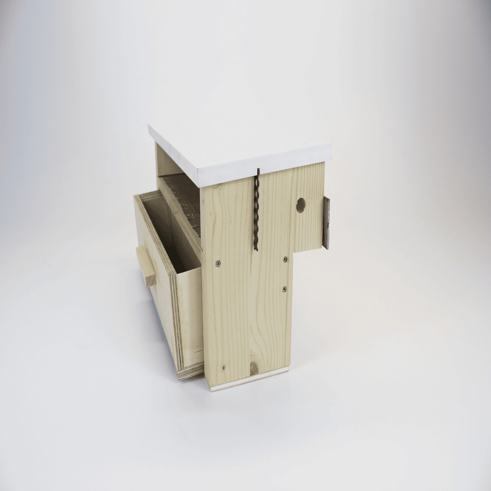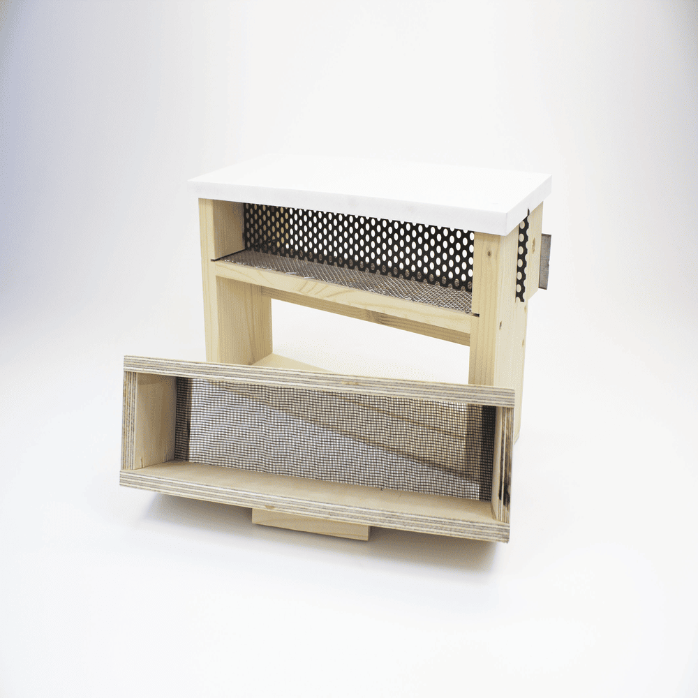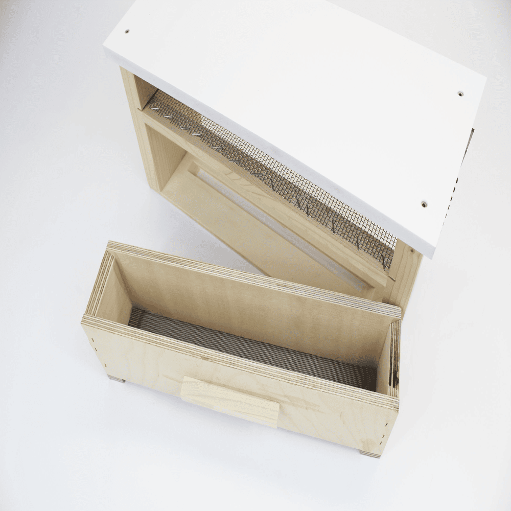 Neue Konstruktion! Pollenfalle vorne zum Einhängen am hohen Boden, ohne komplizierte Vormontagen sofort verwendbar! Ernten des Pollens durch herausziehen (vorne) der Schublade